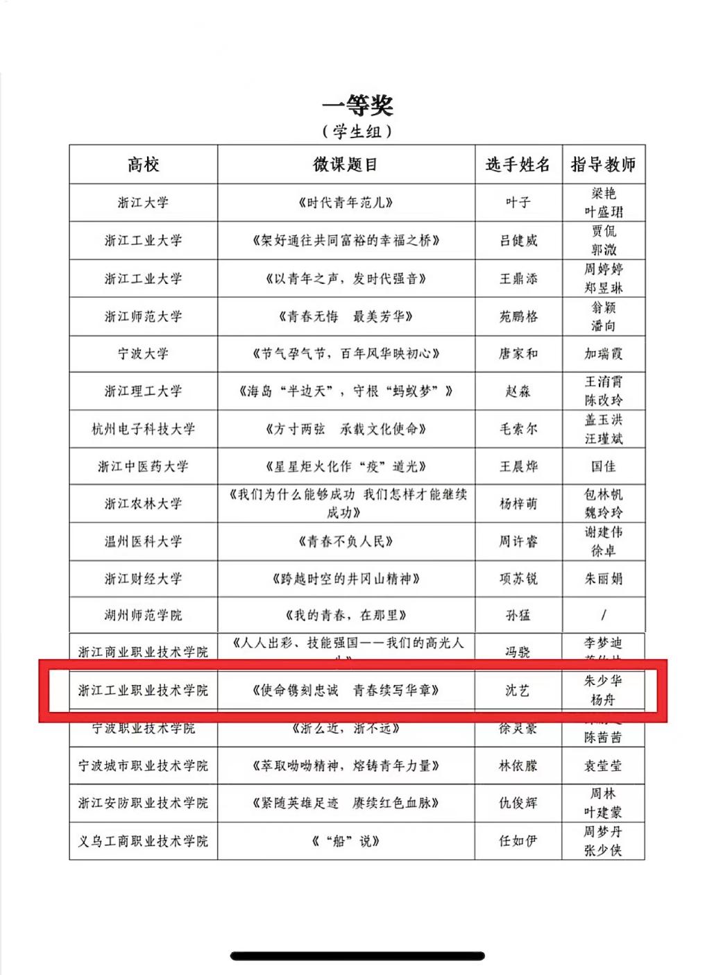 近日,由共青团浙江省委、浙江省教育厅、浙江省学生联合会主办的2022年浙江省高校思政微课大赛落下帷幕,我校报送的6件作品经过激烈角逐,共获得一等奖1项、三等奖4项。