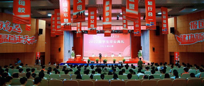 6月25日下午,学校在图书馆报告厅隆重举行2022届学生毕业典礼。学校领导、相关职能处室负责人、二级学院班子成员、学工办主管、教科办主管、辅导员、班主任代表,2022届毕业生代表等400多人出席毕业典礼。学校党委委员、副校长潘荣江主持毕业典礼。