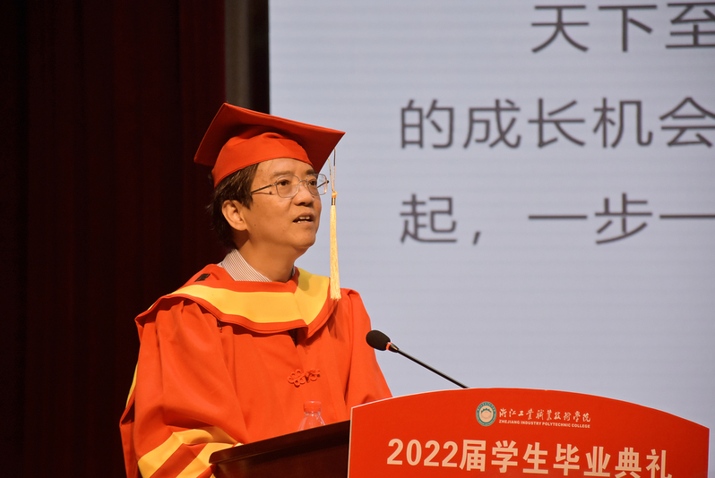 毛建卫以《在坚持实心、实学、实干中成就工匠之才》为题,回顾了学校办学以来的发展成就,肯定了同学们为学校做出的努力与贡献。他强调:党在坚持求真务实精神中引领民族复兴,广大毕业生务必做人要实,谋事要实,创业要实;学校在实学思维办学中高质量发展,始终坚持“三个爱”“四个天”“四个实”;同学们务必以实心实在提升人格境界,以实干实行开创事业天地,以实用实效成就专业贡献。