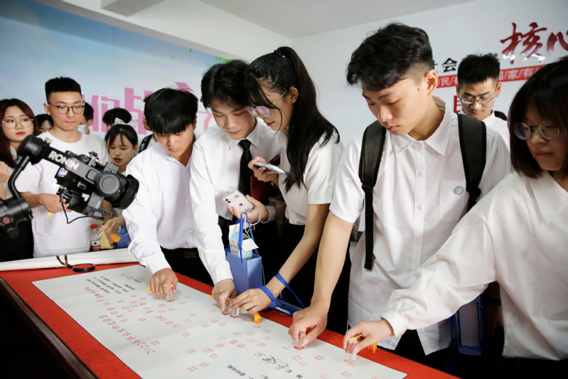 “母校放心、兴校有我!请党放心、强国有我!”毕业生通过诗朗诵《青春礼赞 逐梦未来》表达了他们对党和国家的热爱与忠诚,对大学青春岁月的不舍与难忘,对即将离别的美丽校园的恋恋不舍以及对未来人生道路的美好憧憬。毕业典礼在校歌声中落下帷幕。