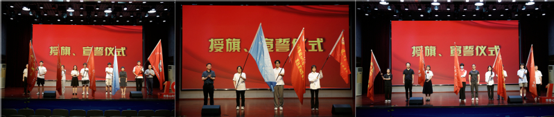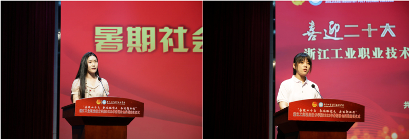 鉴”行者暑期社会实践队指导教师周莹作为代表表达了必将履行好职责、关心同学、保障安全、指导活动的决心。王欣怡同学代表各实践队员发言,她表示要拿出“拒绝摆烂、奋力拼搏”的人生姿态,在暑期社会实践过程中努力迸发出浙im体育 人的青春风采和智慧力量。随后,与会领导嘉宾为即将出征的实践团队授旗。全体实践队队员们发出“青春向党 奋斗强国”的实践誓言。