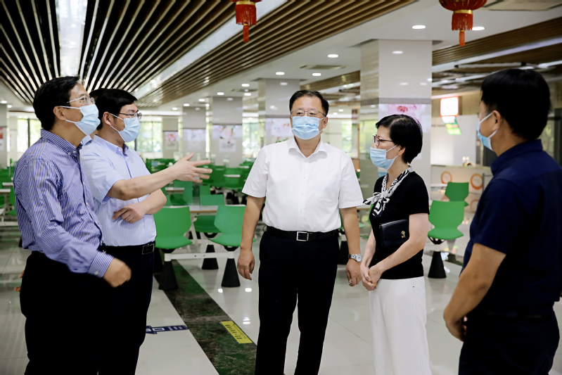 王涛一行实地察看了镜湖校区校门、食堂等疫情防控重点部位,询问了解防控举措落实情况和开学准备情况,就师生返岗返校、新生开学报到、教学安排、就餐秩序等方面进行了交流指导。在听取有关工作汇报后,王涛对我校在做好疫情防控的同时又抓好发展取得成果表示肯定,并强调要持续抓紧抓实疫情防控工作,落实省市有关疫情防控要求,确保秋季开学安全平稳;要做好对学生及家长的宣传解释和关心关爱工作,在做好疫情防控的同时体现人文关怀和教育情怀,展现大学风貌和育人担当。