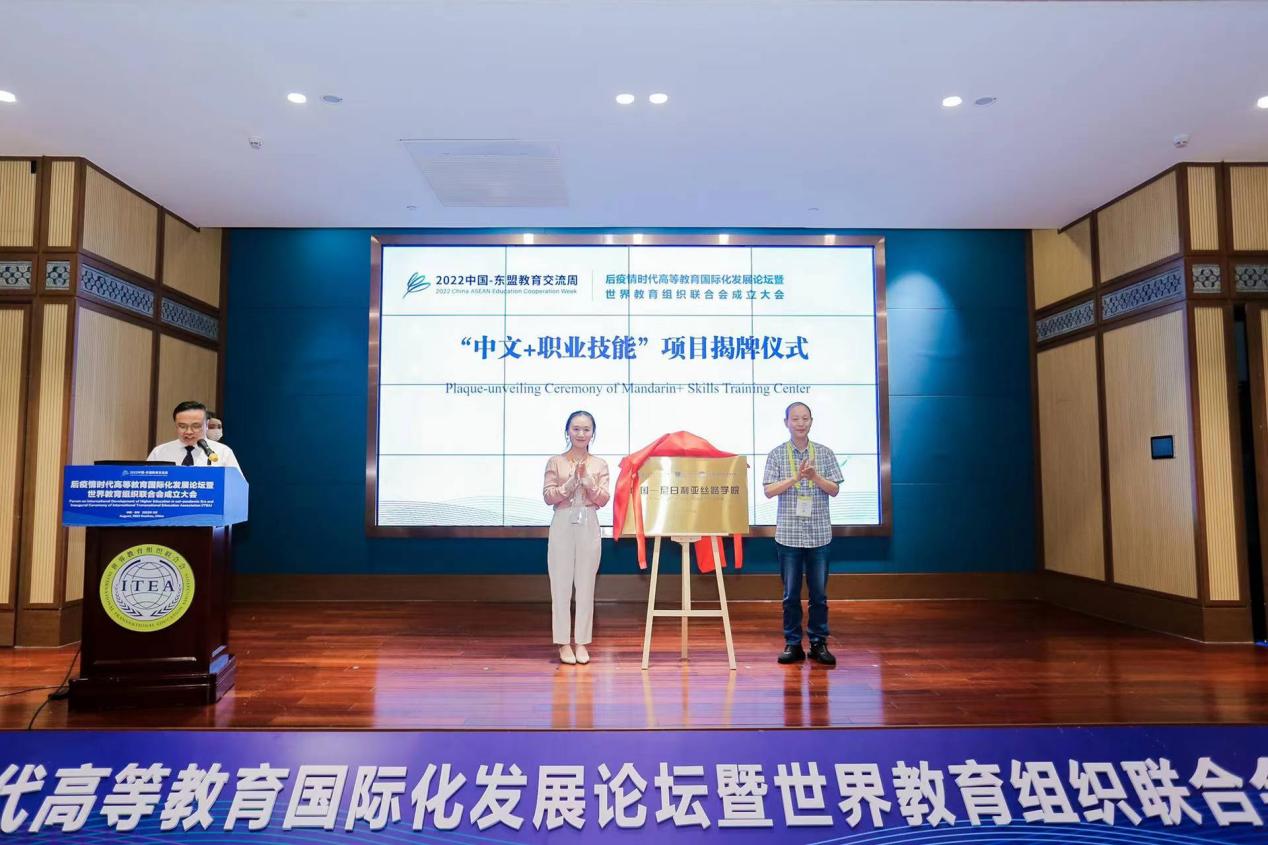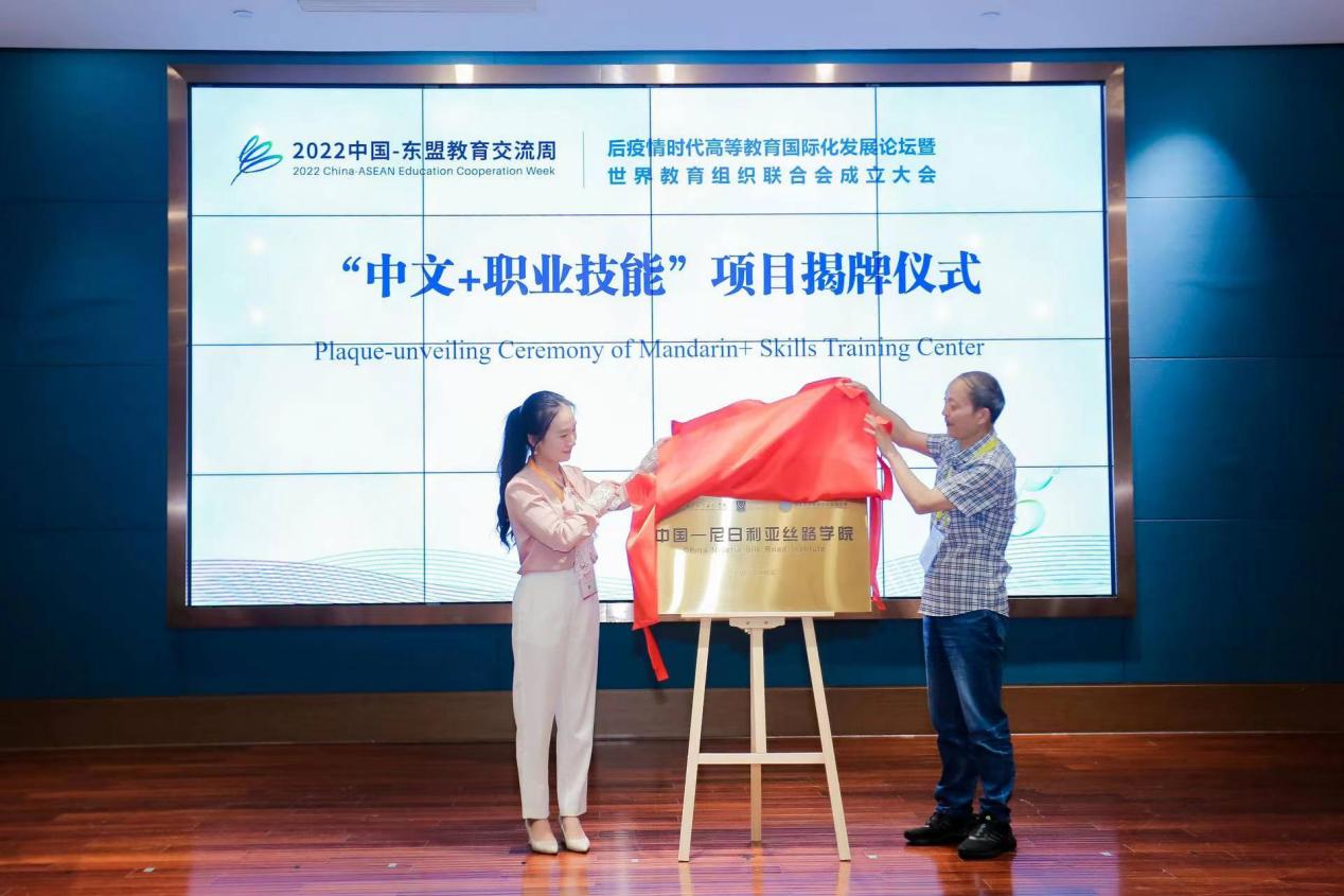 8月23日,学校首个“丝路学院”——“中国-尼日利亚丝路学院”在第15届中国-东盟教育交流周(贵阳)平行论坛暨世界教育组织联合会成立大会上揭牌成立。学校党委委员、副校长骆文炎,国际交流与合作处处长朱金芳,马来西亚国际文化交流中心中国区总经理周晋、尼日利亚埃邦伊州立大学校长希戈齐·恩格沃尔·奥格布(Chigozie Nkwor Ogbu Ogbu)及相关人员线上线下共同参加揭牌仪式。
