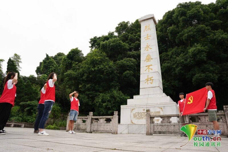 图为实践小队在“吼山烈士墓陵园”前进行党员宣誓。中国青年网通讯员 俞哲超 摄