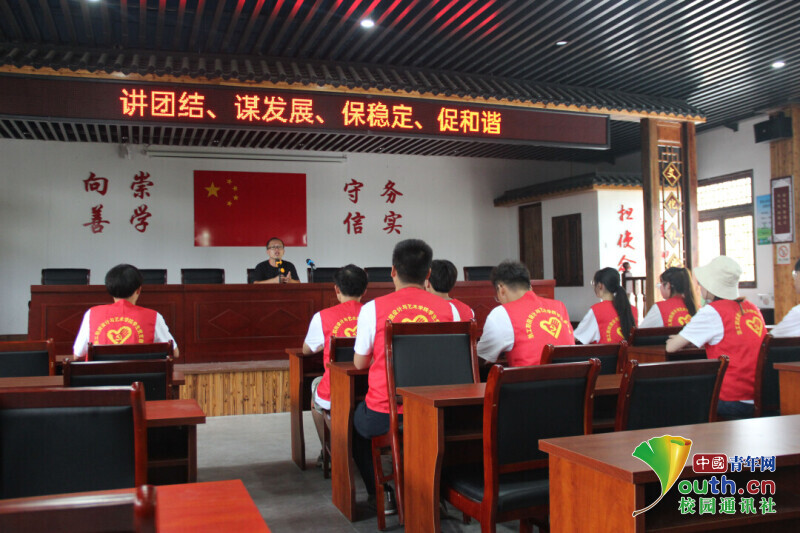 图为当地书记在为实践小队进行当地文化的宣讲。