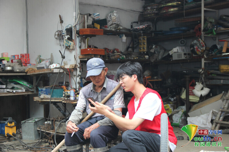 图为实践小队成员在教老人如何使用智能手机。