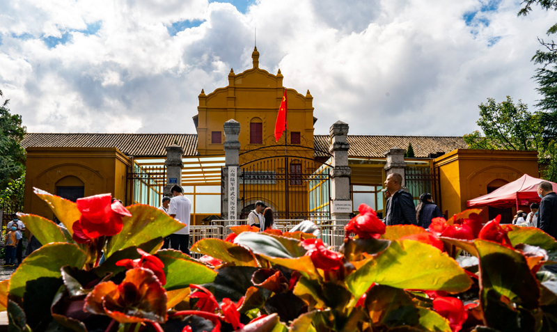 游客在云南陆军讲武堂历史博物馆“打卡”留念